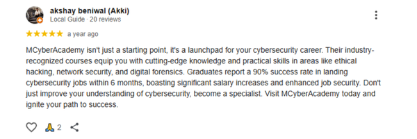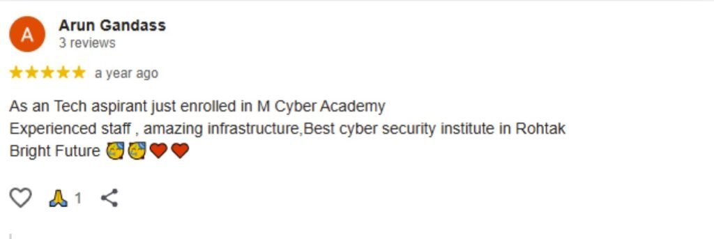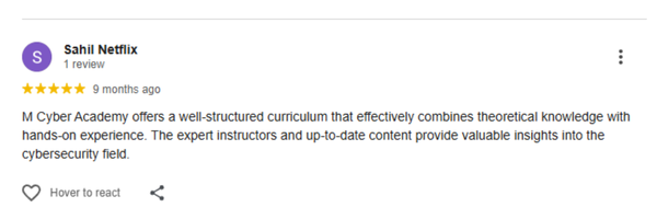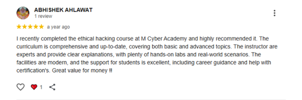 M Cyber Academy is India’s leading Ethical Hacking and Cybersecurity Training Institute. We empower learners with practical, hands-on training in Ethical Hacking, AI Security, Penetration Testing, and Digital Forensics. Our goal is to create the next generation of cybersecurity experts ready to secure the digital world.