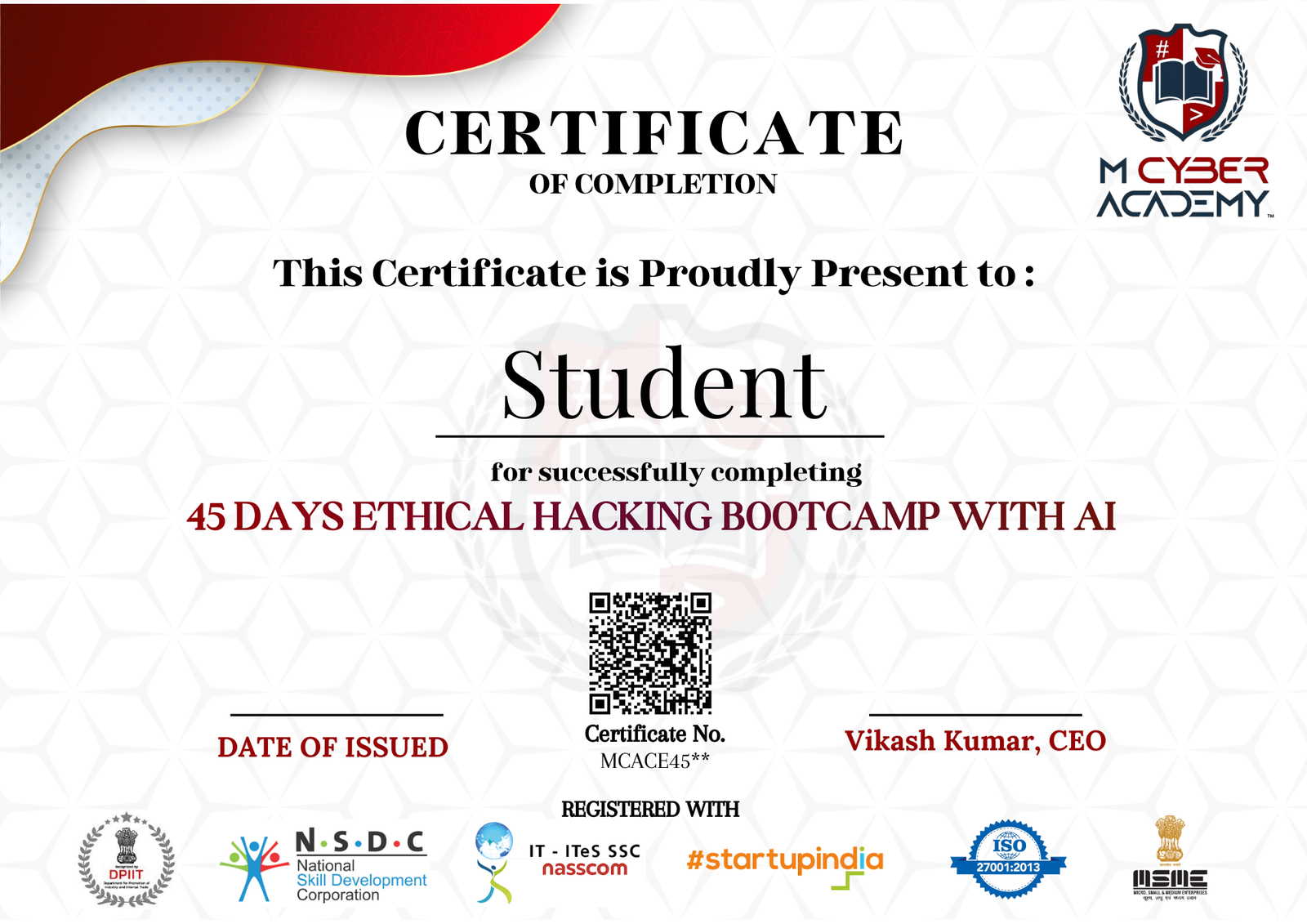 Yes. You’ll receive a certificate from M Cyber Academy, verifying your successful completion of the course and showcasing your expertise in Ethical Hacking & AI Security.
